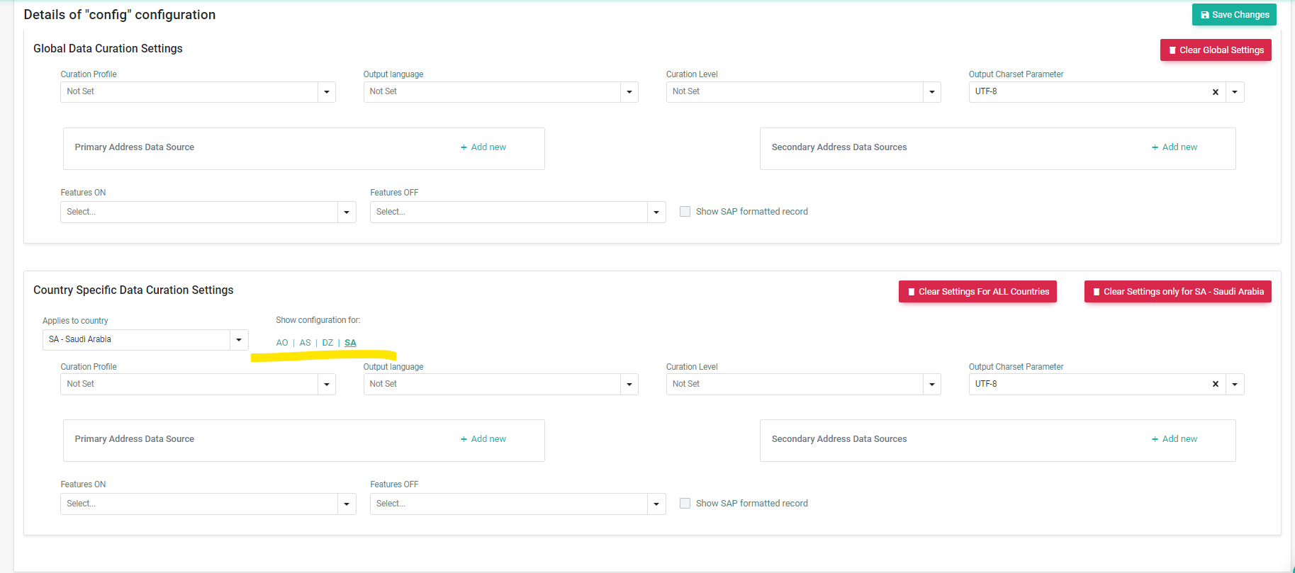 Currently, if you want to enter change a country specific curation setting you have to select the country from a drop-down list of all available countries. However, it is not clearly visible for which countries a unique configuration has been entered. The solution would be a list of all country specific settings that is always displayed + a button to add an additional country specific setting.