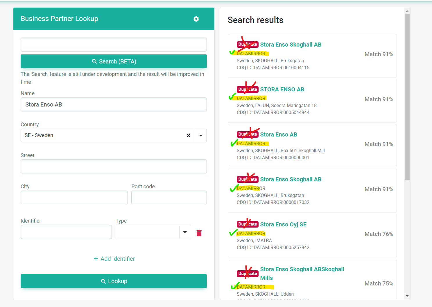 as a user i would like to have the possibility to deactivate the "duplicate" flag in the "lookup" results list.
