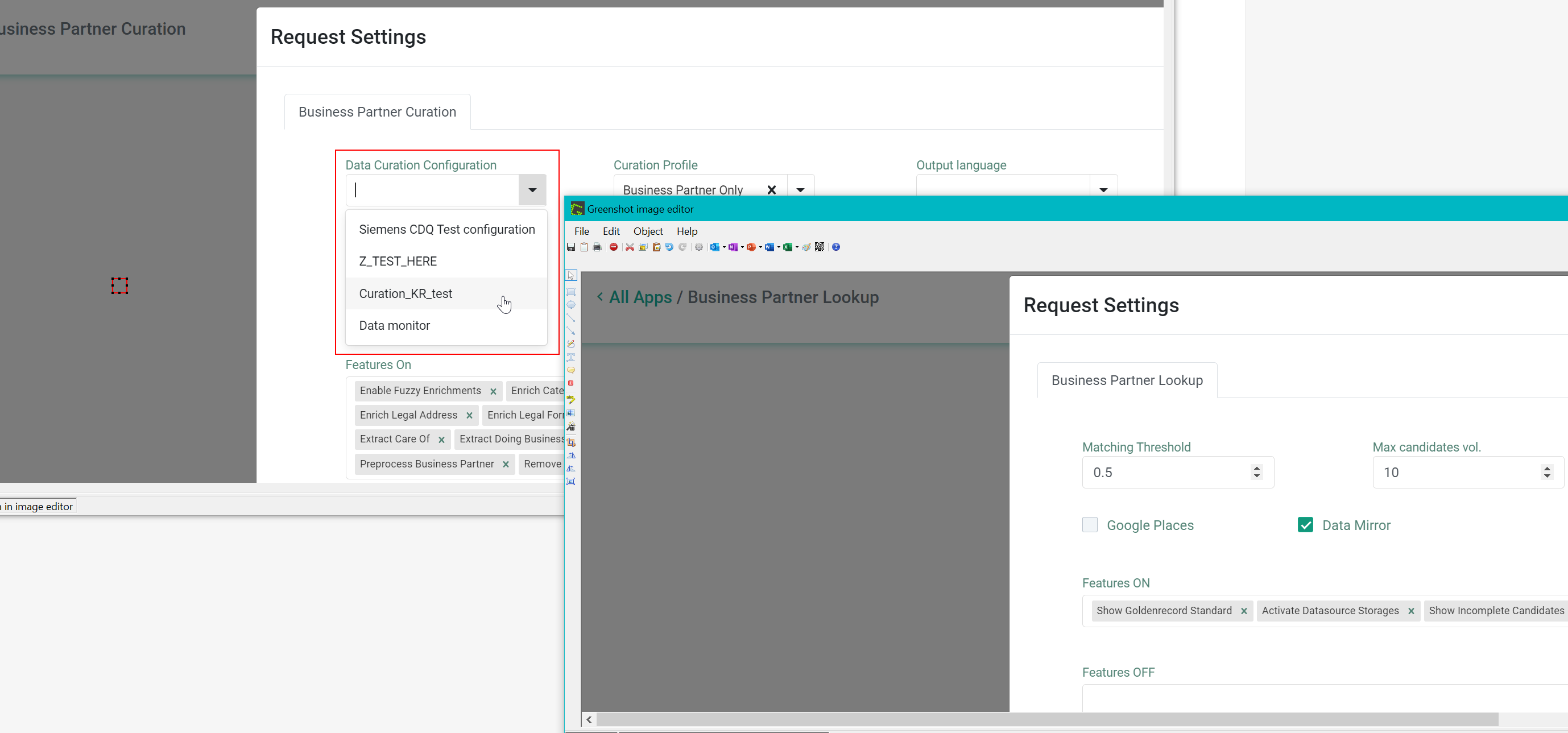 The Business Partner Lookup App does currently require the setup of individual configuration, e.g. features activation as the defined configuration from the 'Business Partner Lookup Configurator' App cannot be selected via drop down.