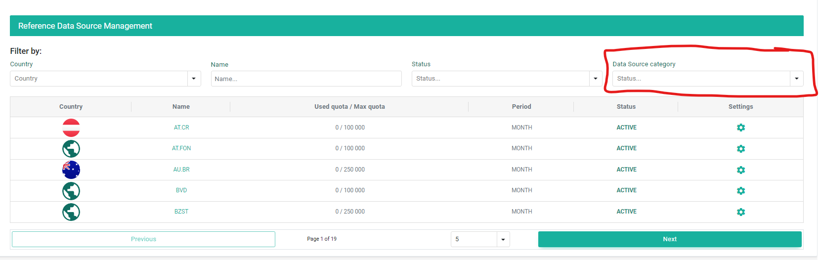 Customers should be able to view all commercial data sources directly with one click. In the "data source category" there should be at least two choices: