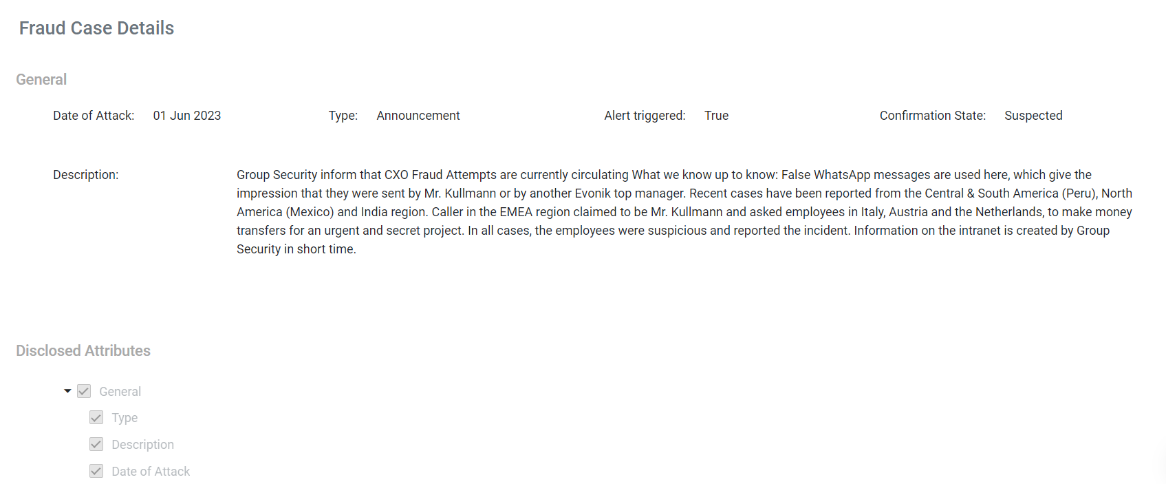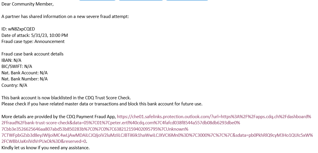We had the Case that a Customer reportet a new Fraud Approach. Because its just an Approach, there was no Bank information attached to it, and without the description it confused a few customers.